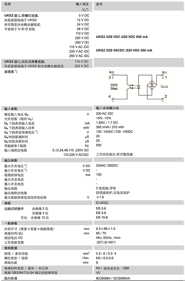 UKG2系列 帶光電耦合器-UKG2/220.../220VDC 050MA